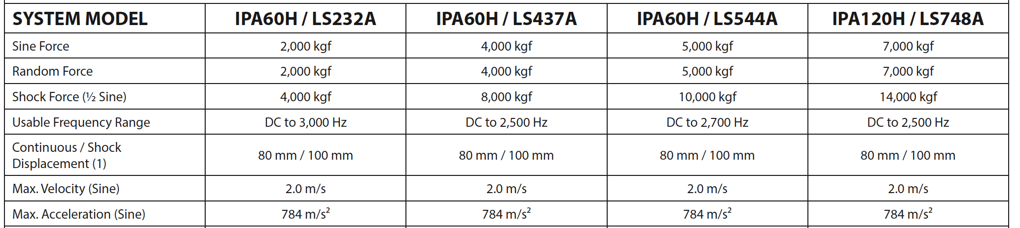 Vibration System Force Rating from 2,000 kgf to 7,000 kgf